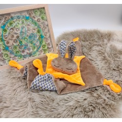 Ce joli doudou lapin est fabriqué dans un tissus spécifique ultra doux. Il a été conçu pour répondre à tous les besoins de réconfort de bébé. Prise en main facile grâce à ses oreilles, visage calme donnant une sensation d'apaisement, petits noeuds à mâchouiller, grande surface pour se cajoler (environ 28*28cm). Il sera l'élément incontournable de votre mini vous.